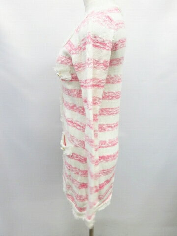 BYE BYE/バイバイ ニット カーディガン カットソー トップス ボーダー柄 ロング丈 白 ピンク サイズ38 レディース 【中古】【ベクトル 古着】 180407 ベクトル マークスラッシュ状態ランク ”B”詳細については、下記および「状態ランクについて」ページをご覧ください。